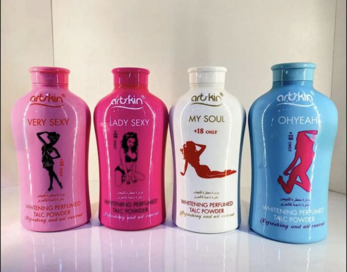 پودر آرت اسکین بر پایه مواد موثره روغن کالاندولا، تالک، زینک اکساید جهت کاهش تعریق و خوشبو نمودن بدن در قالب قوطی های 250 گرمی عرضه می شود.